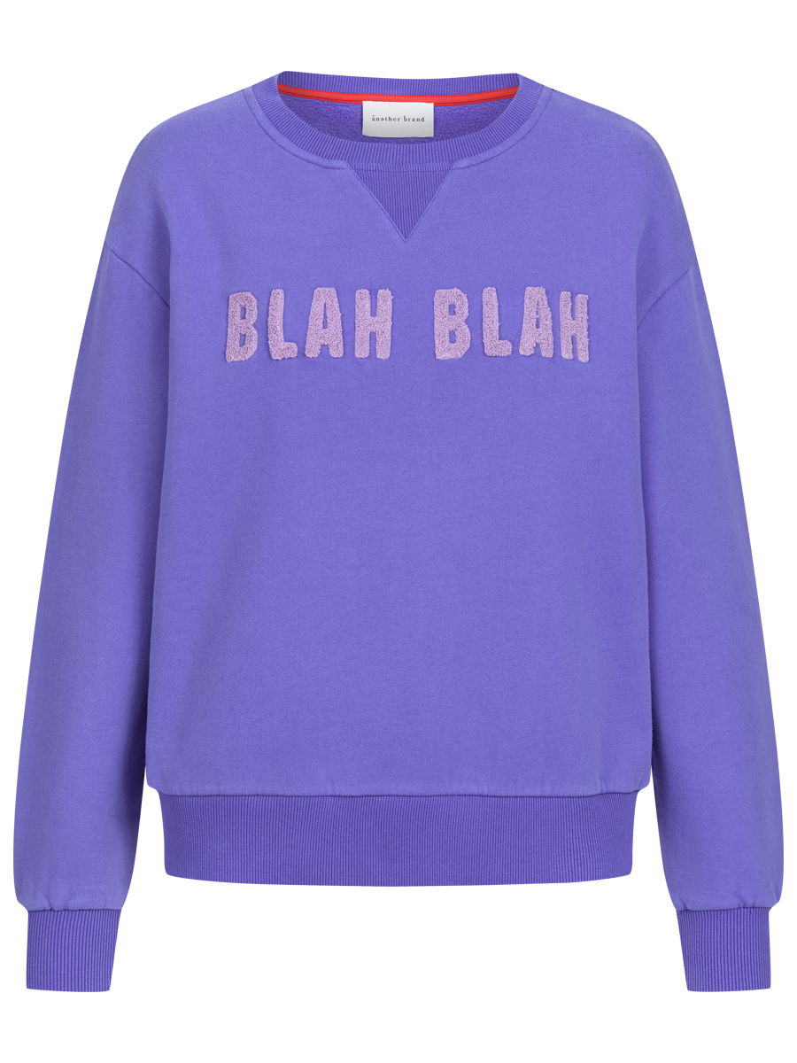 Blah blah sweatshirt in lila mit markanter Loop Embroidery. Gefertigt in Portugal aus reiner Baumwolle.