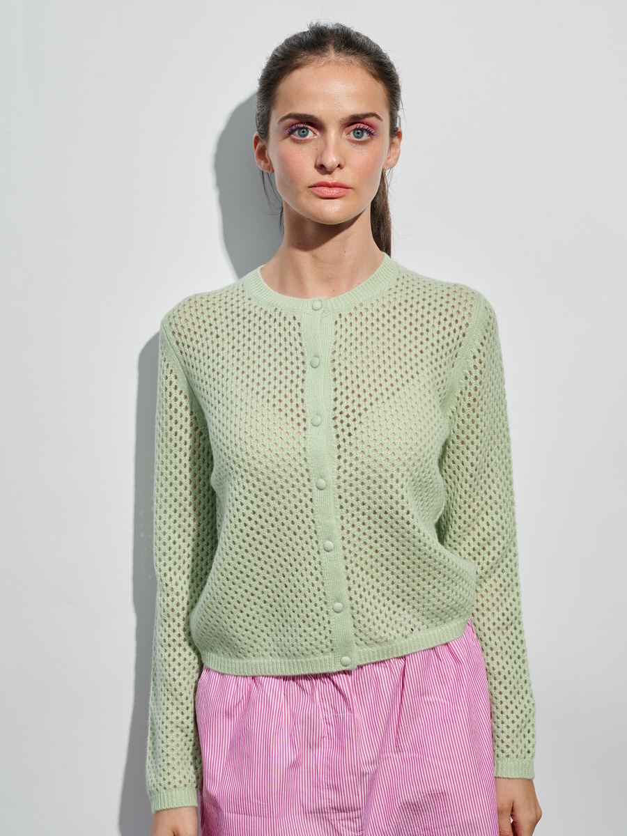 Kaschmir Cardigan in Netz Optik in Mint