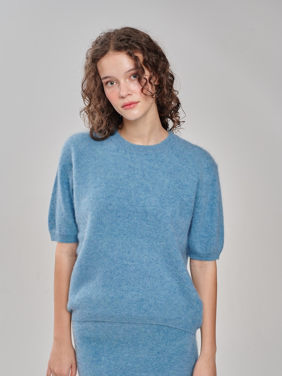 Brushed Kaschmir 1/2-Arm Pullover türkis