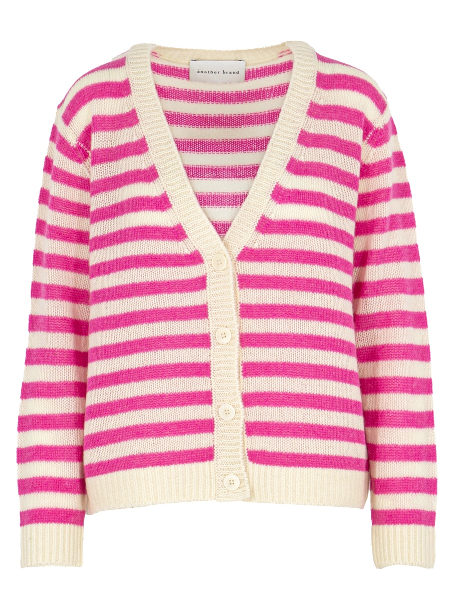 Kaschmir Cardigan mit Streifen in fuchsia/cremeweiß