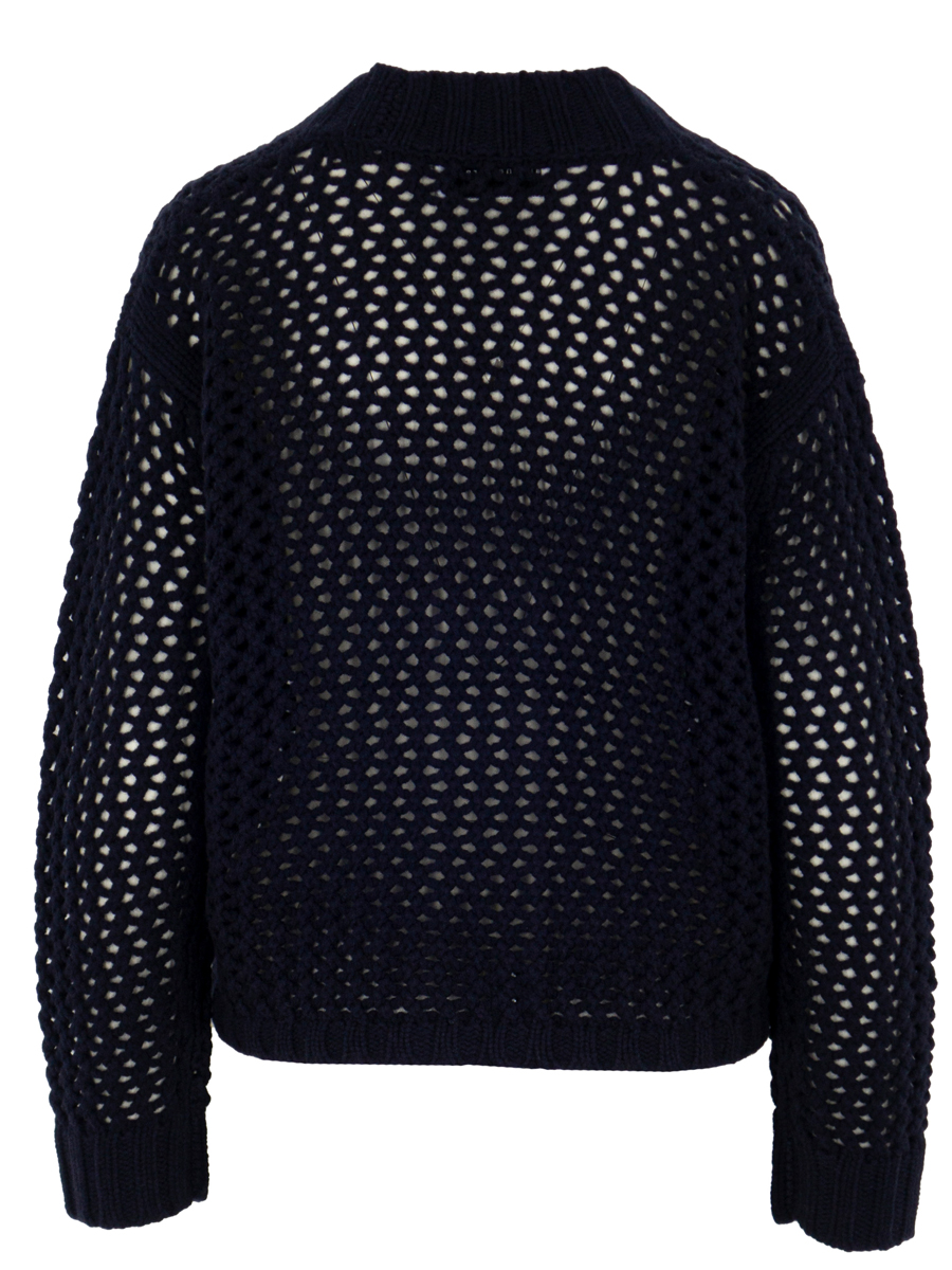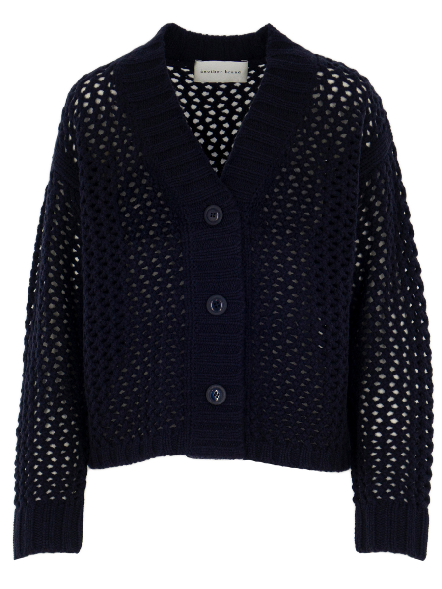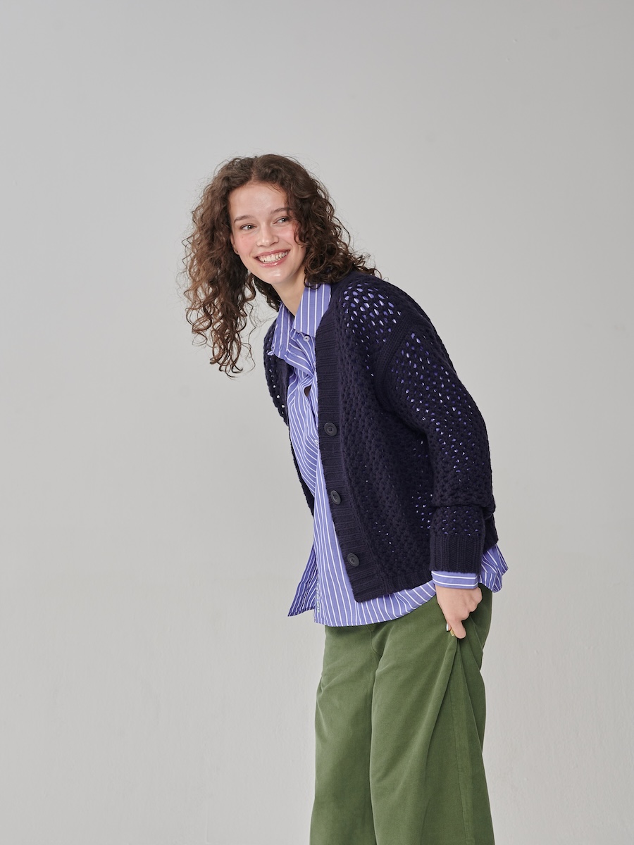 Strickjacke mit Lochstrickmuster in dunkelblau
