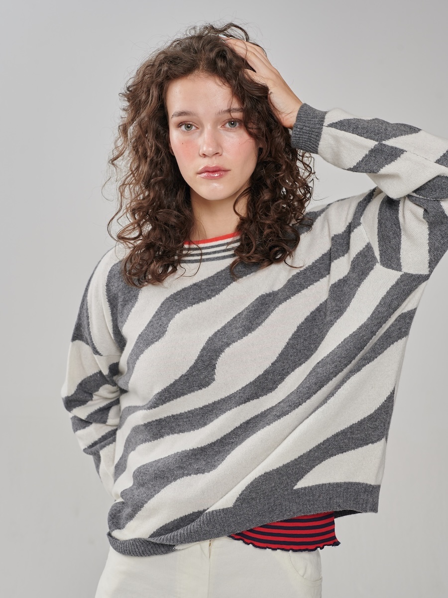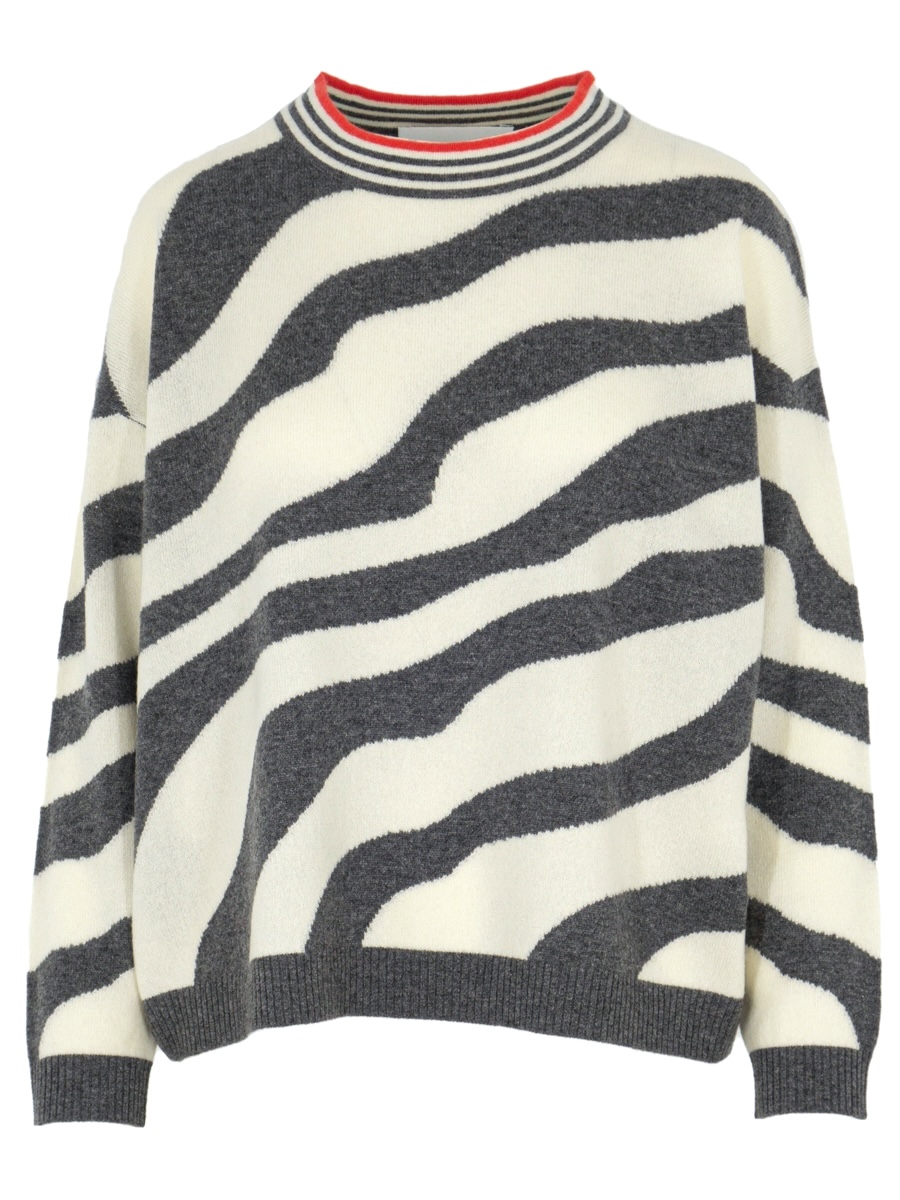 Kaschmirpullover mit Zebra Jacquard Muster in grau