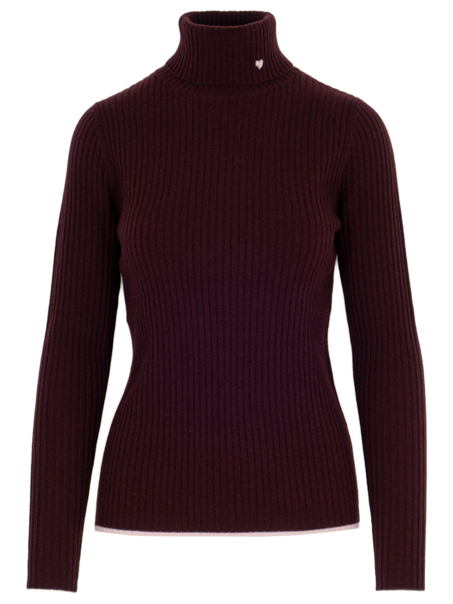 Rollkragen Kaschmirpullover in Rippstrick Optik in bordeaux