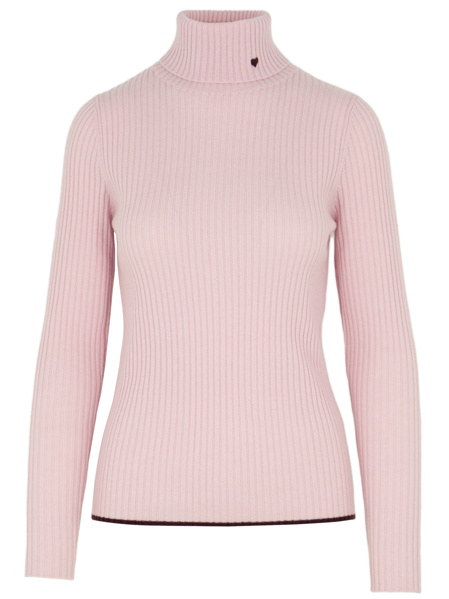 Rollkragen Kaschmirpullover in Rippstrick Optik in rosa