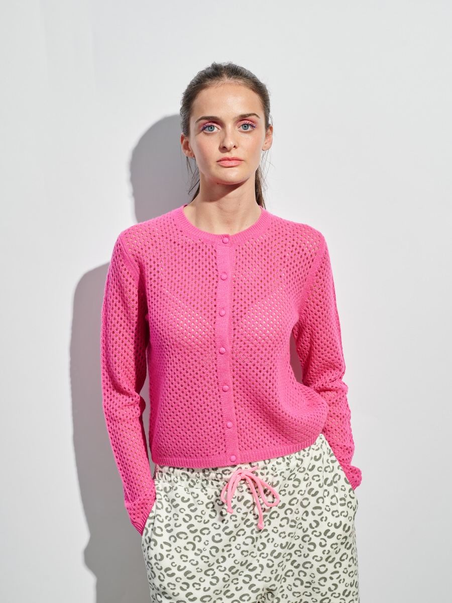 Kaschmir Cardigan in Netz Optik in fuchsia