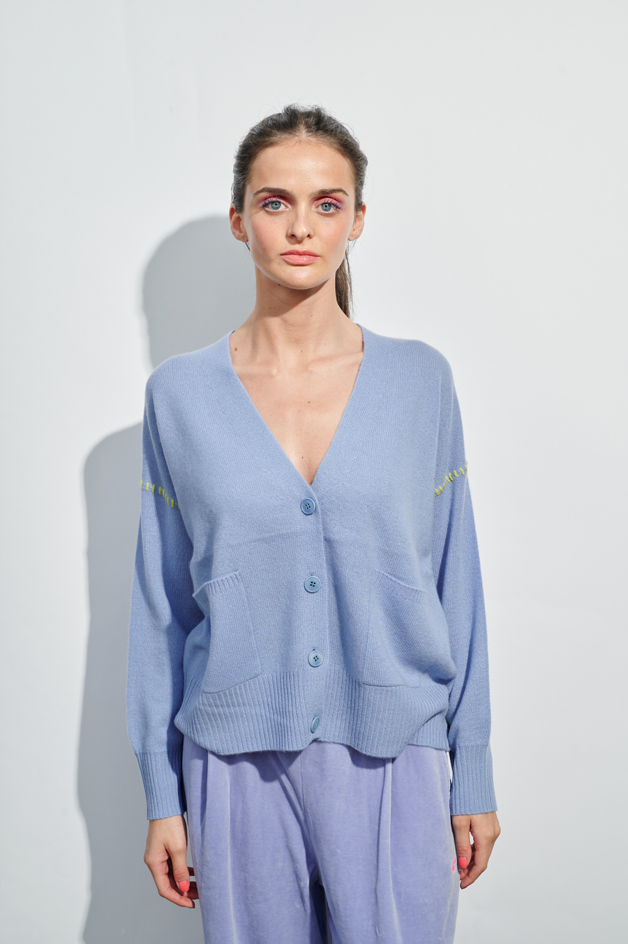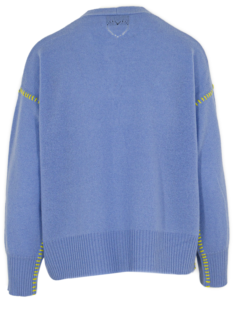 Kaschmir Cardigan in hellblau mit gelben Kontrastnähten