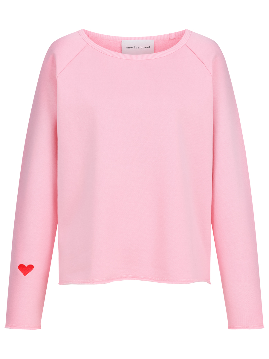 Dieses leicht ausgestellte Sweatshirt wurde in Portugal aus weichem Baumwoll-Jersey mit offenen Kanten an Saum und Ärmeln gefertigt. Das süsse gestickte Herz auf dem Ärmel rundet das Modell gelungen ab.